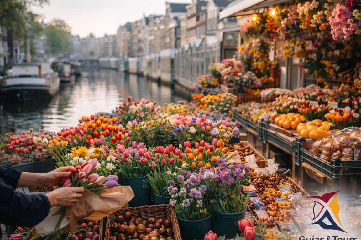 El Bloemenmarkt es el único mercado flotante de flores del mundo. Se sitúa sobre barcazas ancladas en el canal Singel y es uno de los iconos visuales de la ciudad.
